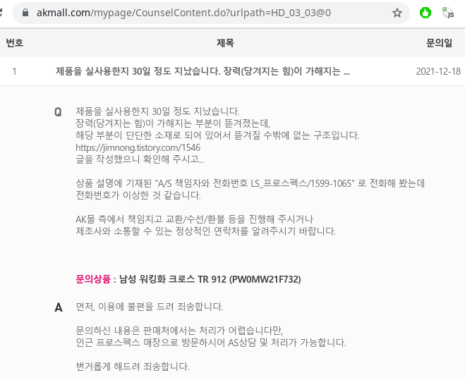 | 프로스펙스 신발 AS 후기(TR912 트래킹화) (0) | 2021.12.29 |