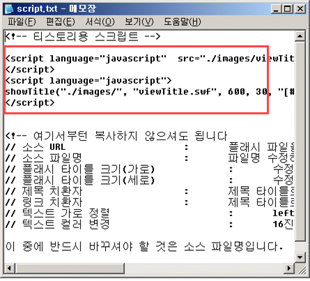 ⑨ 압축을 풀어놓은 폴더에 있던 script.txt 파일을 메모장으로 엽니다.