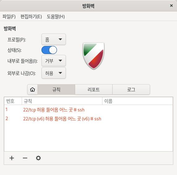 ▲ GUFW 패키지를 설치하면 스크린샷처럼 GUI로 관리할 수 있습니다.