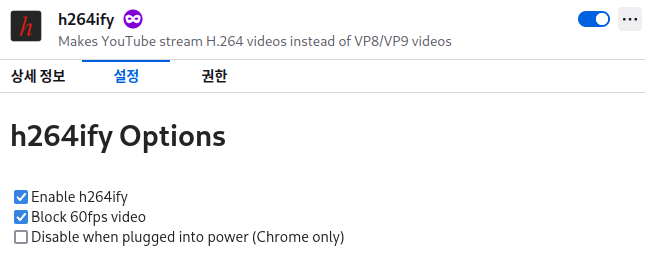 h264ify 같은 확장 기능을 설치하세요. 별 차이 없으니 아무거나 설치하세요.