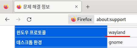 ▲ 윈도우 프로토콜(Window Protocol) : wayland 인지 확인합니다.