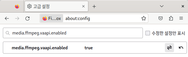 ▲ media.ffmpeg.vaapi.enabled 항목을 true로 바꾸고,