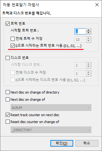 ▲ 0으로 시작하는 트랙 번호 사용(01, 02, ...) 체크하고 확인버튼 눌렀습니다.