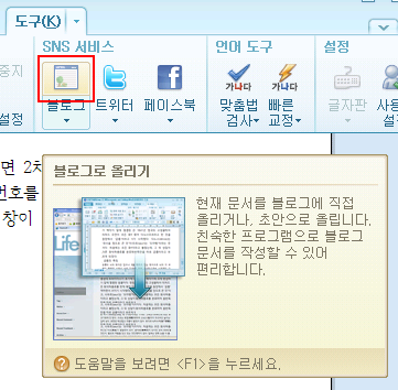 ▲ ‘도구 → 블로그로 올리기’ 로 진입합니다.
