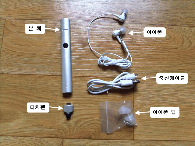 구성품은 본체와 결합형 터치펜, 커널형 이어폰, MicroUSB 케이블, 사이즈 다른 이어폰 팁들. 단출합니다. 이어폰은 16옴 저항값을 지닌 저가형 제품입니다. 저음이 상대적으로 많고 해상력이 떨어지는 편이므로 평이 좋은 이어폰을 쓰시는 분이라면 봉인해 두셔도 좋겠습니다.