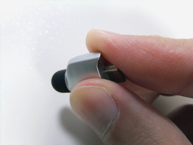 뒷면 클립의 탄성은 좋은 편이지만 접지면을 잘 잡아주는 구조는 아니므로, 위에서 아래로 꼽는 데에는 무리가 없으나 옆으로 꼽으면 높은 확률로 미끄러집니다.