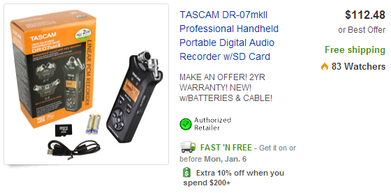 그런데... 가격이 은근히 부담스럽습니다. 물론 보이스레코더도 국내에서는 (쓸데없이) 비싼 편이기 때문에, 보이스레코더 다음 단계로 본다면 이해가 되기는 하지만...